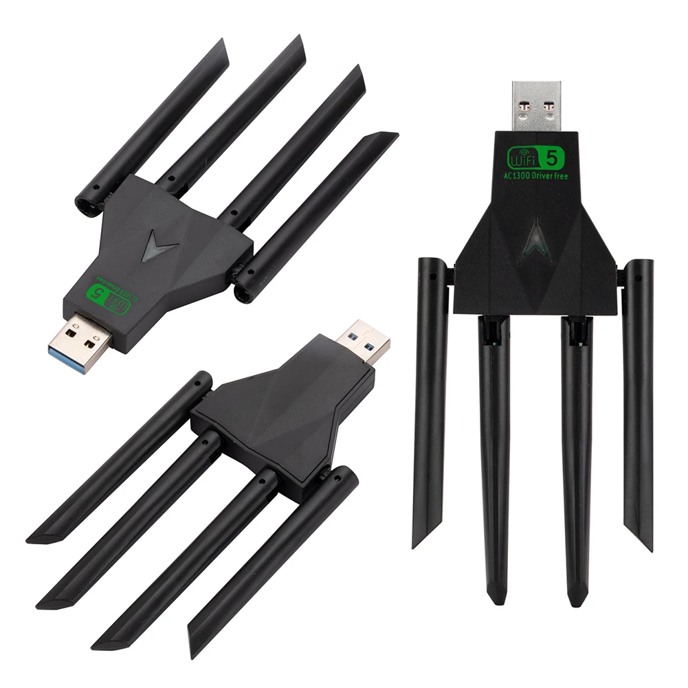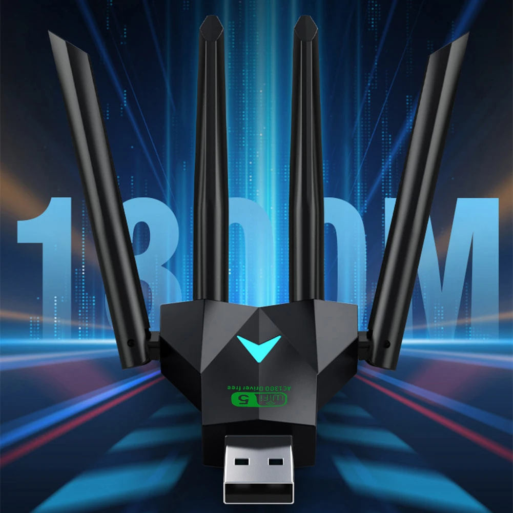 1300Mbps Wireless Network Card Dual Band 2.4/5.8Ghz USB 3.0 WiFi USB Adapter 4 Antenna Wi-Fi Dongle Wireless Receiver for PC/Laptop