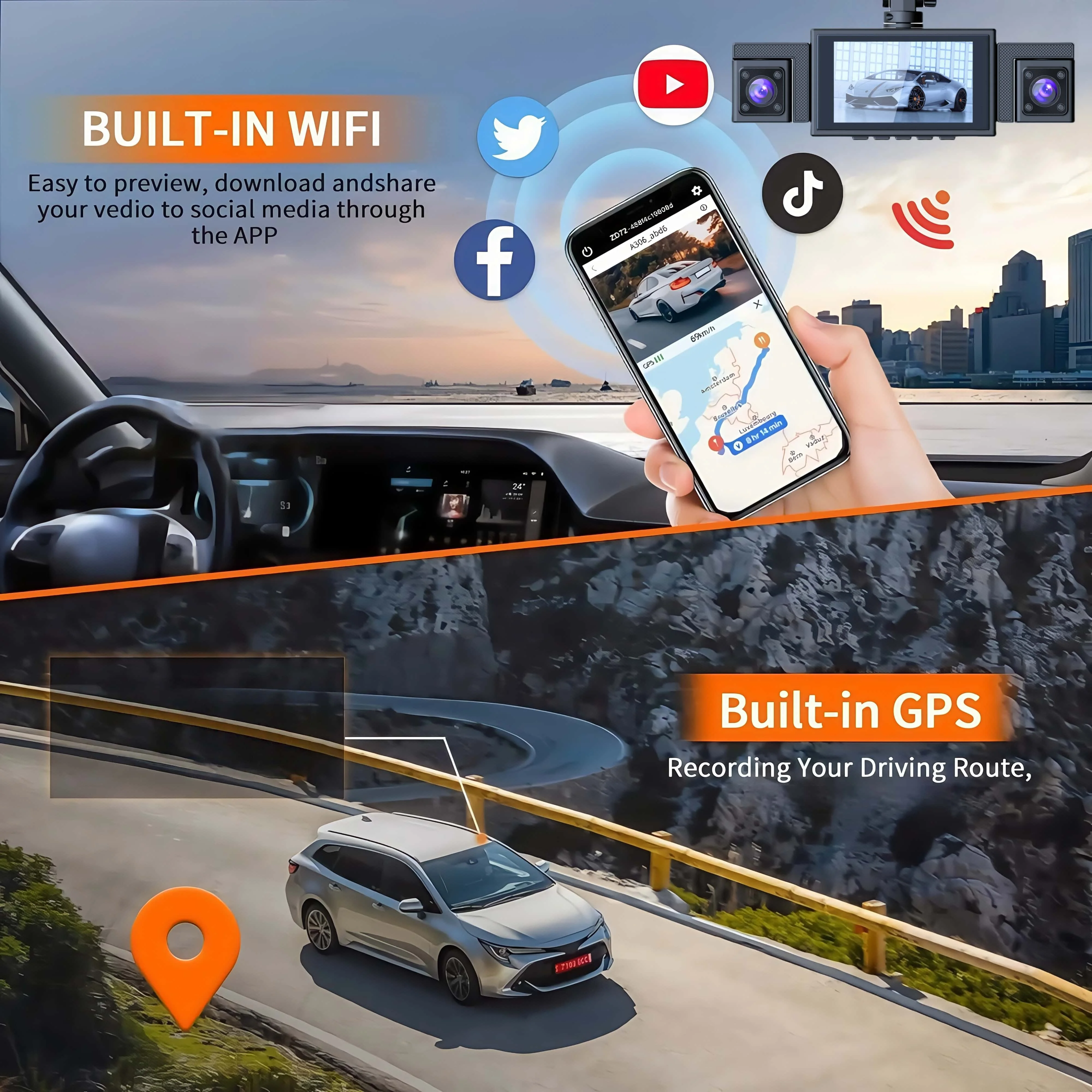 4-Channel 4K Car Dash Cam DVR, Built-in WiFi & GPS, Enhanced Night Vision, G-Sensor, 64GB Card Included, Front/Left/Right Camera