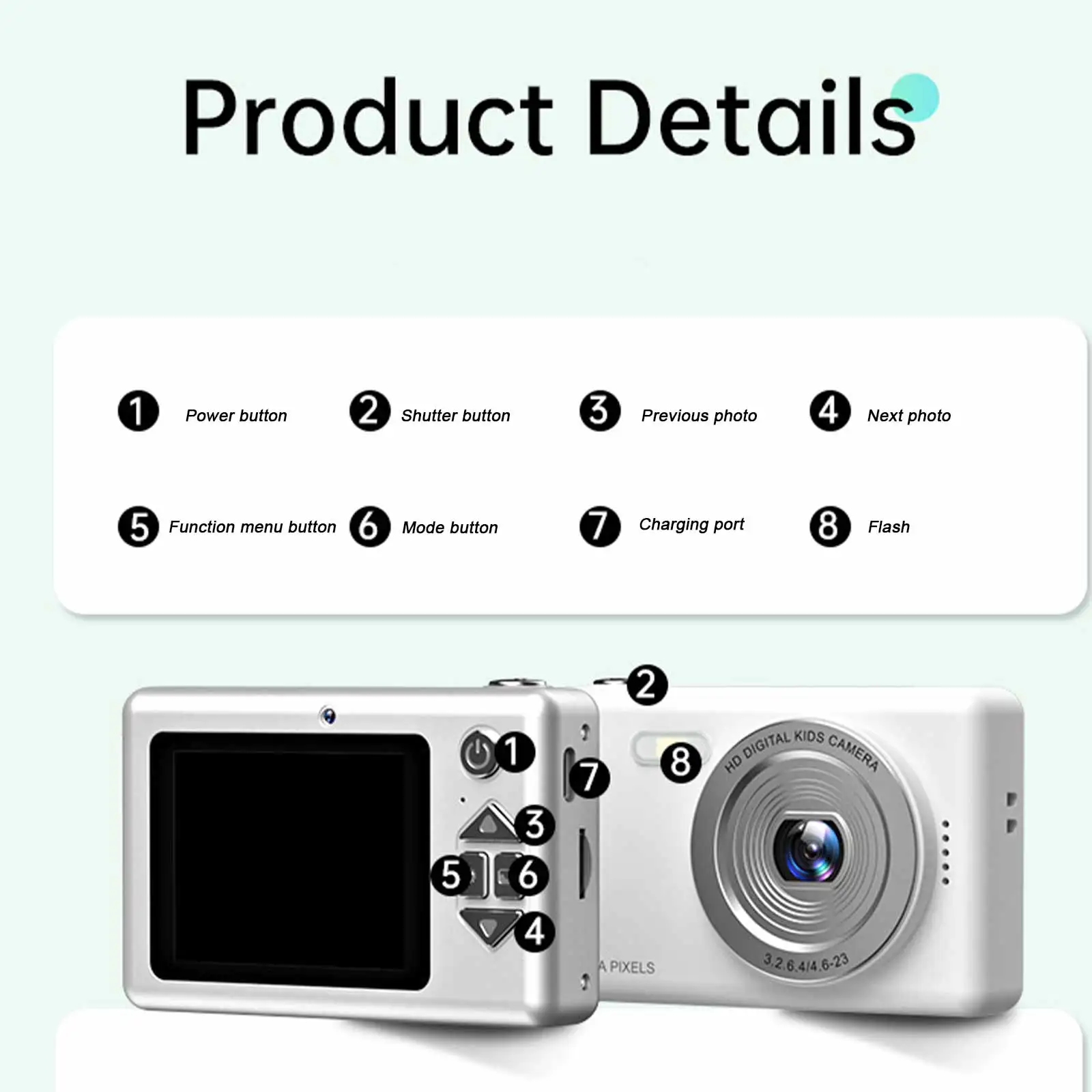 Features: 1.Intelligent Anti-Shake Technology: Equipped with an advanced electronic stabilization system, this digital camera keeps your footage steady and clear in dynamic environments or family gatherings, delivering smooth recordings every time. 2.High Value & Portable Design: Featuring a stylish, lightweight build, this 4k digital camera is easy to operate and carry, making it the great companion for travel, outdoor adventures, or daily snapshots on the go. 3.Versatile Shooting Modes: Enjoy a variety of shooting options with this digital point and shoot camera, covering portraits, landscapes, and night scenes, allowing you to enhance your photography skills effortlessly. 4.Ultra HD 4K Video Recording: Capture vivid moments with this portable selfie camera's 4K ultra-high-definition video capability, suitable for both family memories and professional-grade content creation needs. 5.48MP High-Resolution Imaging: Achieve stunning detail and vibrant colors with this compact small camera's 48MP resolution, ensuring every photo is a masterpiece worth cherishing. Specification: Product size: 110.00x110.00x50.00mm Product size: 4.33x4.33x1.97inch Material:Plastic Origin (country or region): Mainland China (Origin)