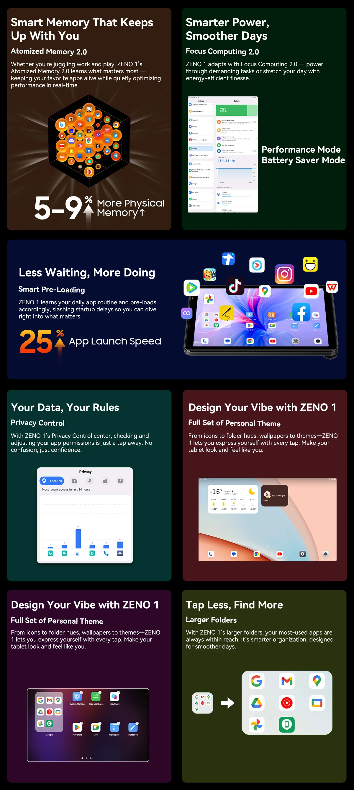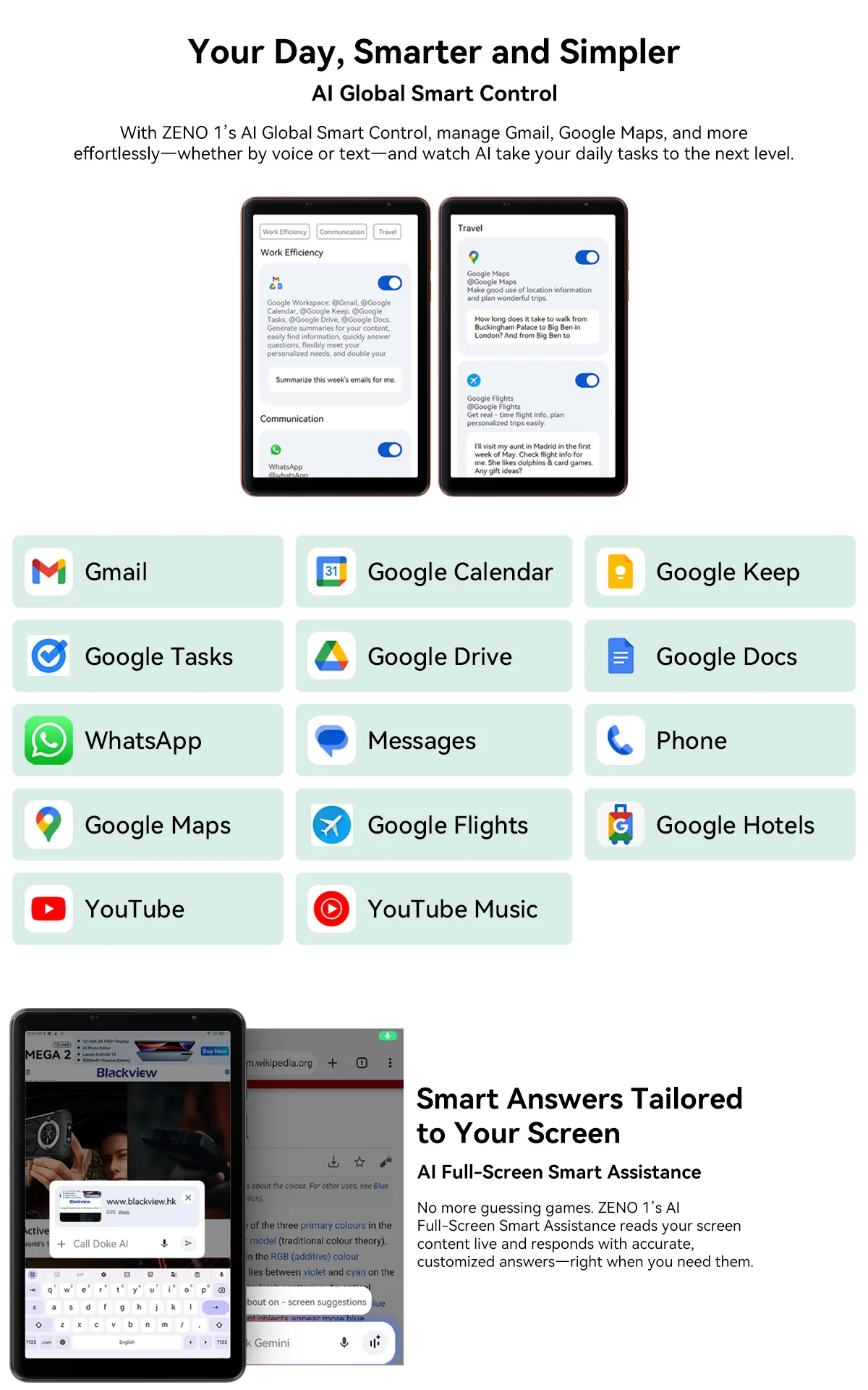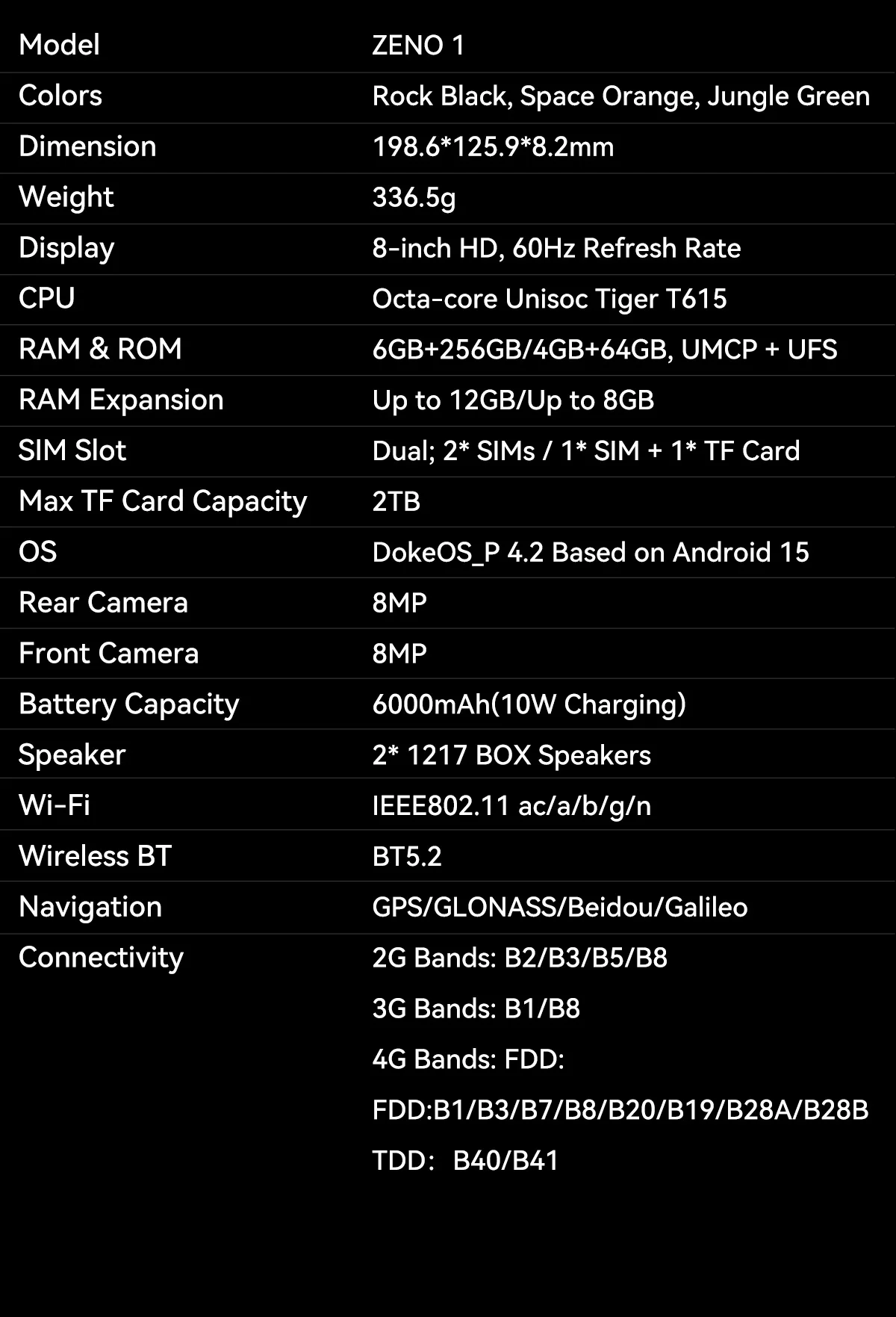 Blackview ZENO 1 Tablet PC 8'' HD Display 4GB+64GB / 6GB+256GB Unisoc T615 8MP Camera 6000mAh Battery Android 15 4G