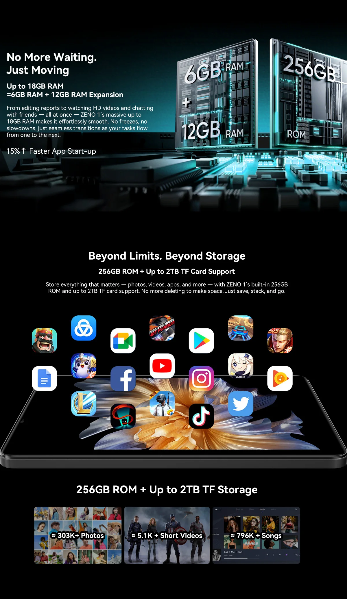 7. RAM & ROM: 4GB (+8GB virtual memory) UMCP RAM + 64GB UFS ROM
