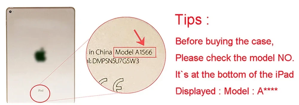 Check the correct model number in the back of iPad before making orders.