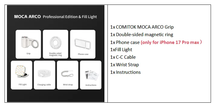 COMITOK MOCA ARCO Magnetic Camera Grip for iPhone Series Detachable Remote iOS17/18/26 Handle Holder for Vlog Recording Selfie