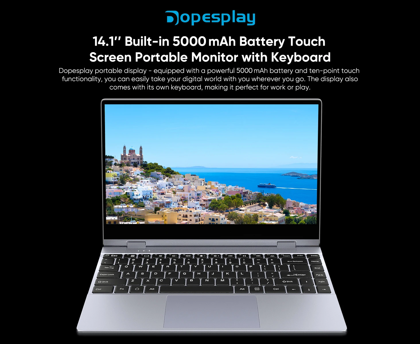 Dopesplay 14.1Inch Portable Monitor Lapdock Built-in 50000mAh Battery 10-Points Touchscreen 1080P HDR IPS Second Screen extender