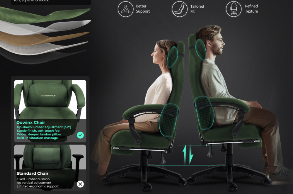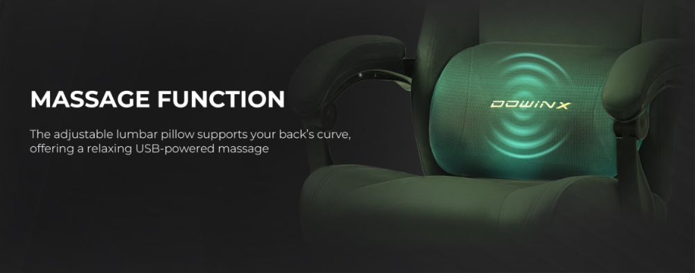 Massage Gaming Chair with Spine Support: The adjustable lumbar cushion in this gamer chair delivers targeted relief and soothing massage vibrations. Its ergonomic design cradles your spine in this ergonomic gaming chair, promoting perfect posture for long hours at your desk or screen