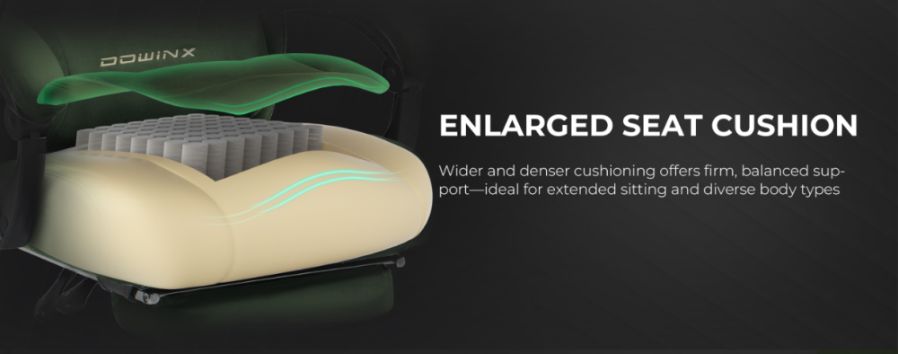 Plush, Form-Fitting Gaming Chair with Cloud Comfort: Sink into our extra-thick seat cushion featuring high-density foam and built-in pocket spring system in this gaming chair with footrest. Enjoy superior pressure relief and lasting support during extended gaming or work sessions.