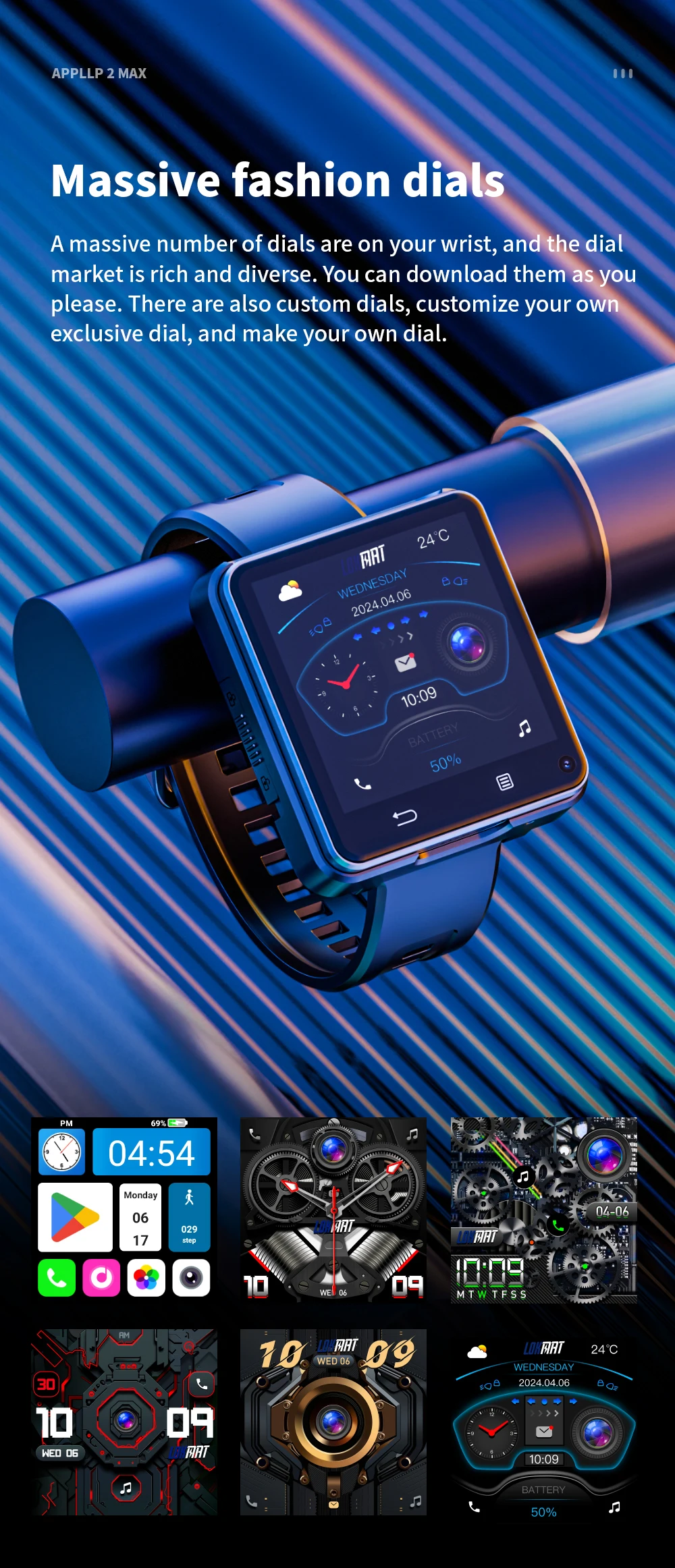 LOKMAT APPLLP 2 MAX Dual Camera Android 11 Watch Phone Wifi Videos Calls Smart Watch 4G Network Phone Calls Mini Smart Phone