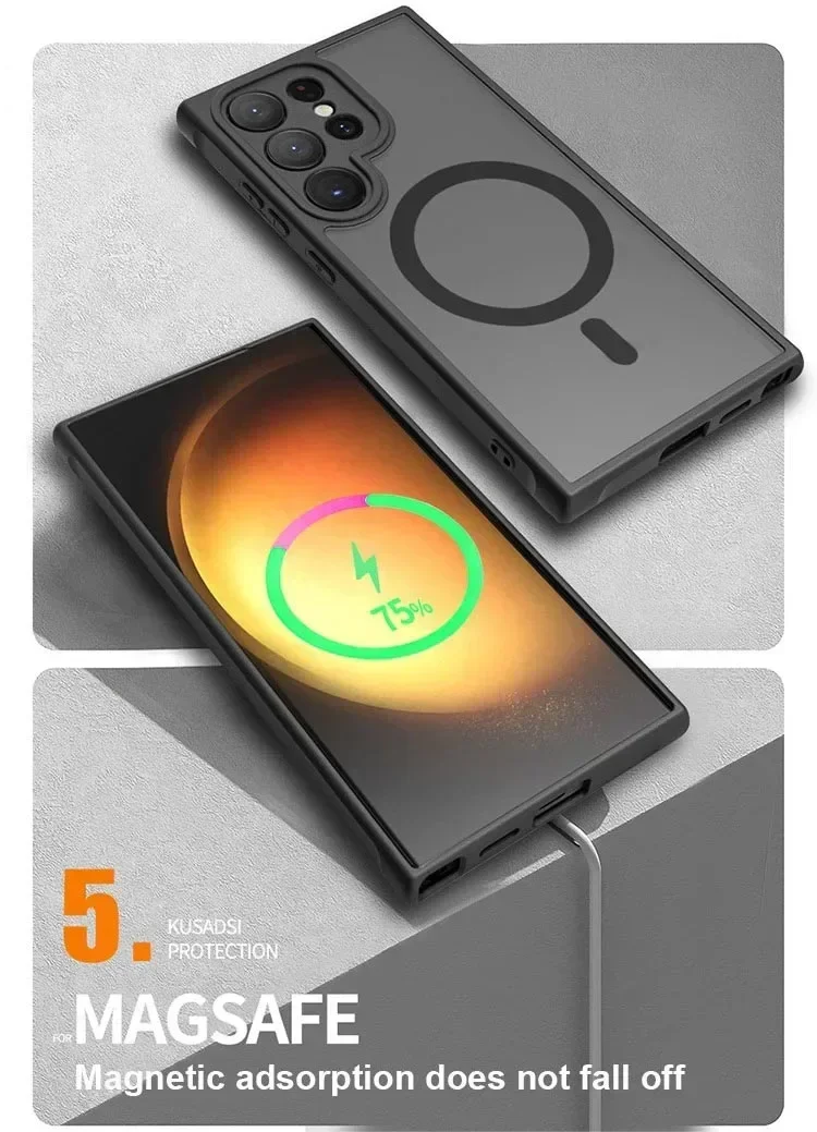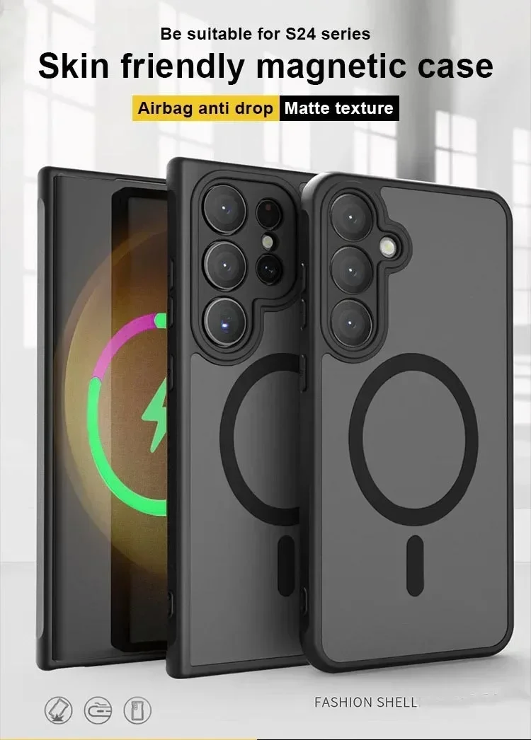Magnetic Luxury Matte Phone Case For Samsung Galaxy S26 S25 S24 S23 Ultra Plus FE Lens Protect Wireless Charge Shockproof Cover