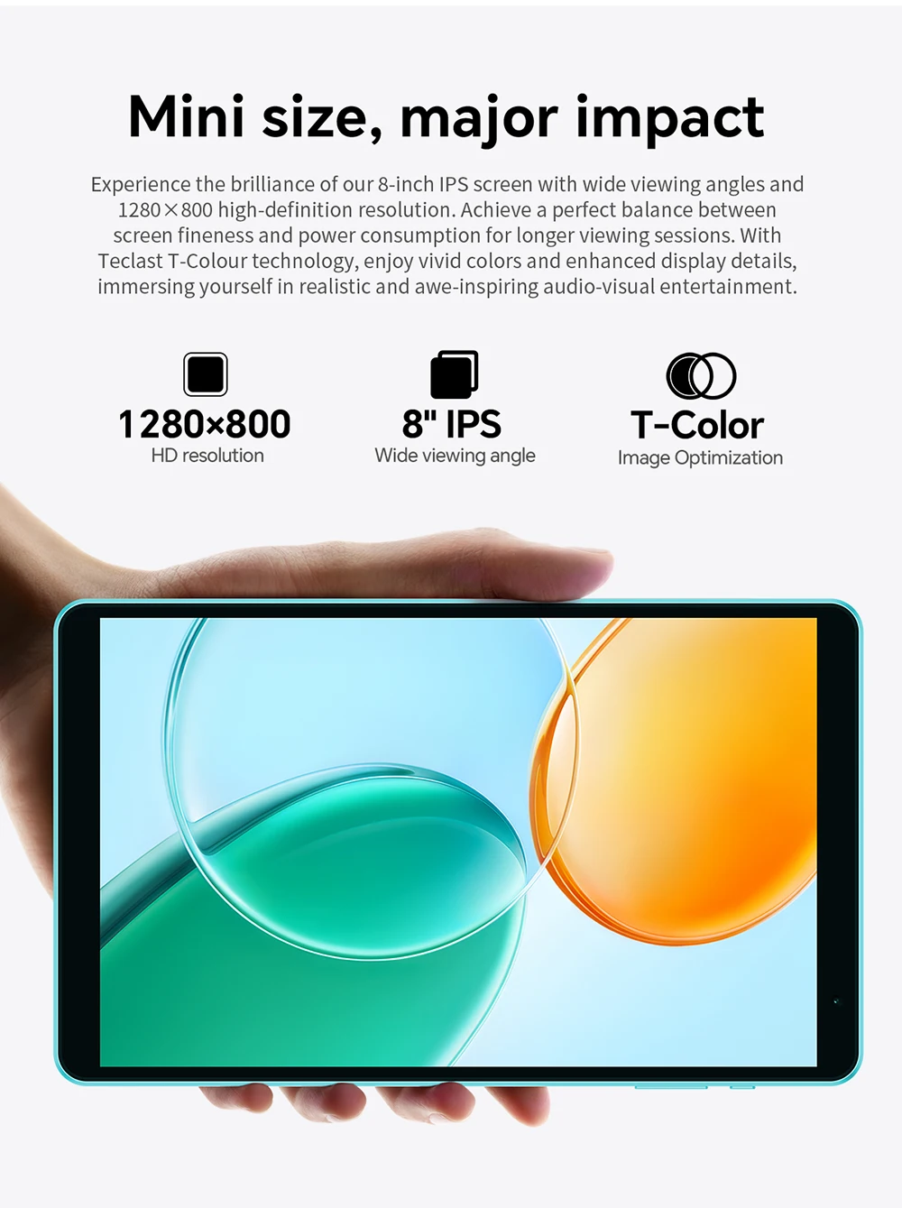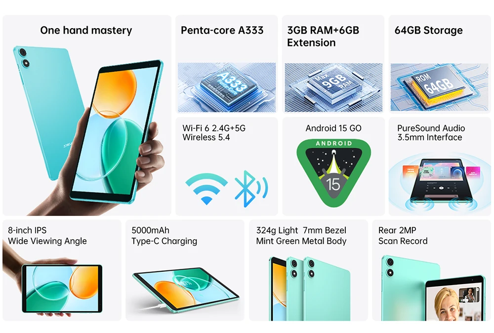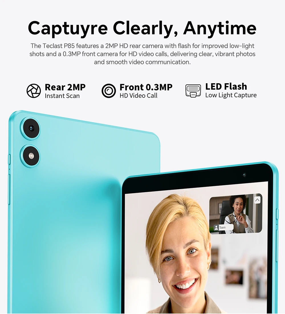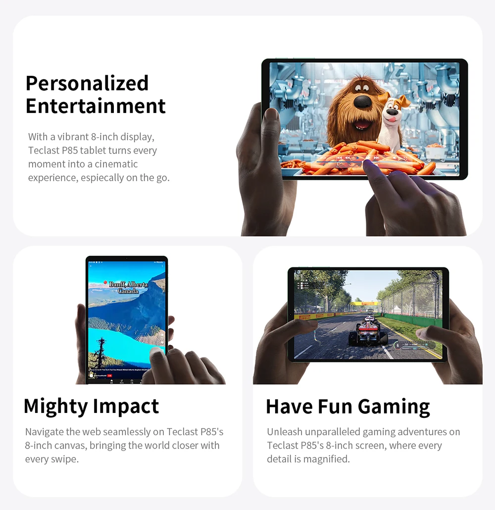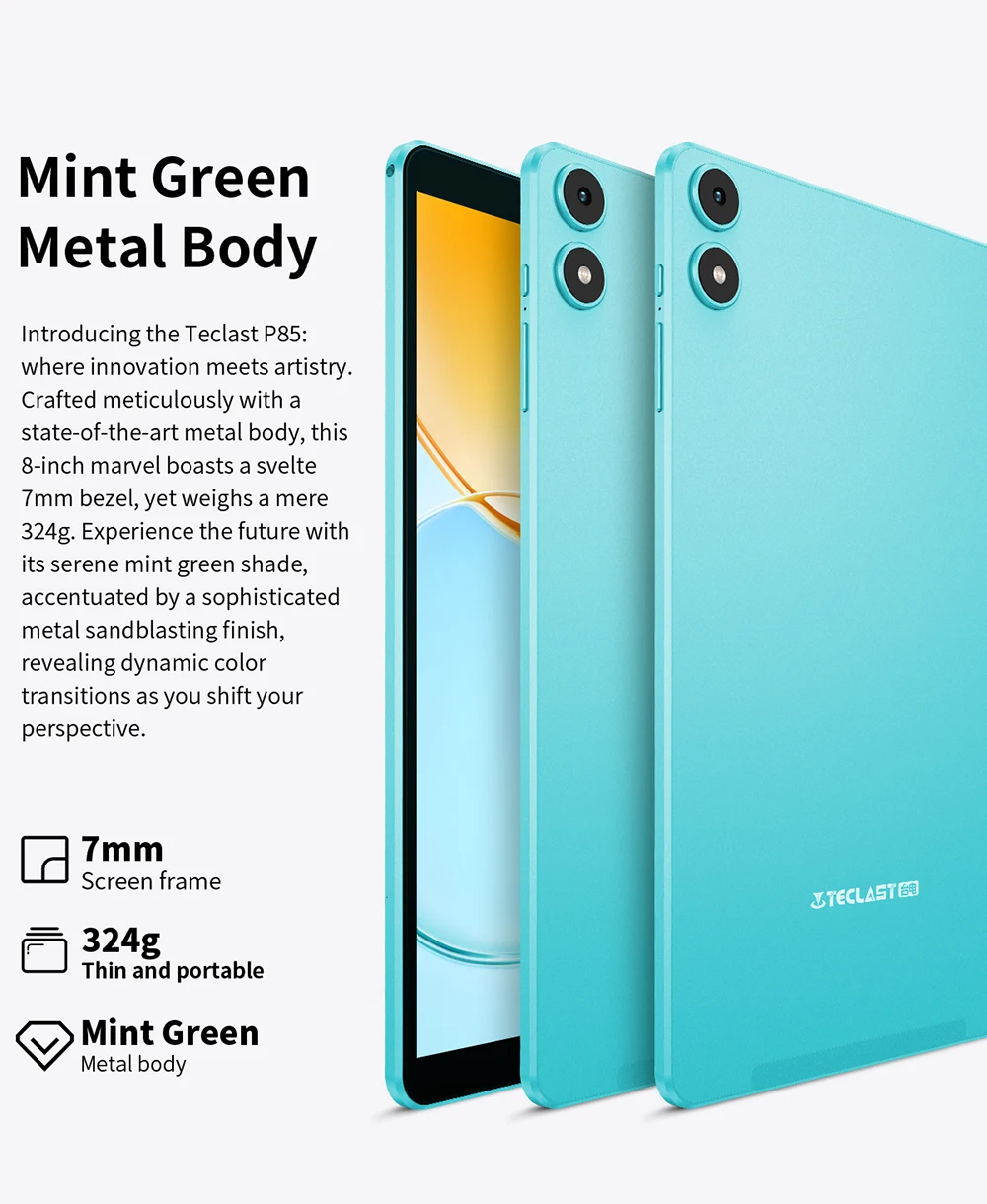 Teclast P85 2025 Android 15 Tablet 8“ IPS 9GB(3GB+6GB Expansion) RAM 64GB ROM A333 5-core Wi-Fi 6 Type-C Metal Body 5000mAh