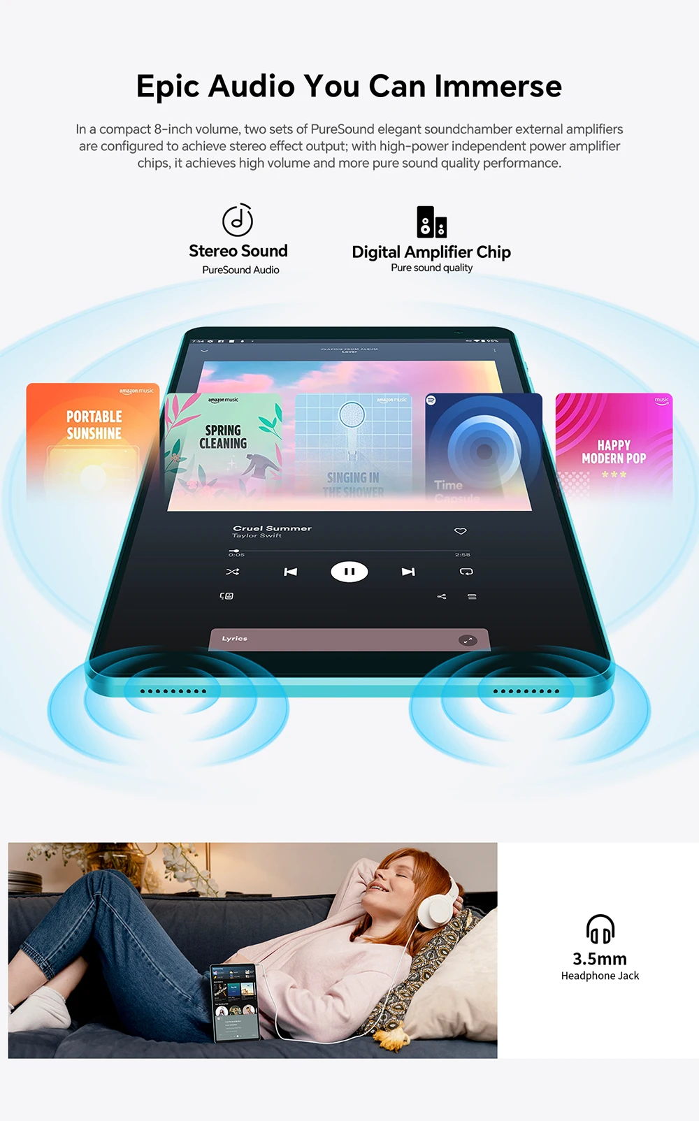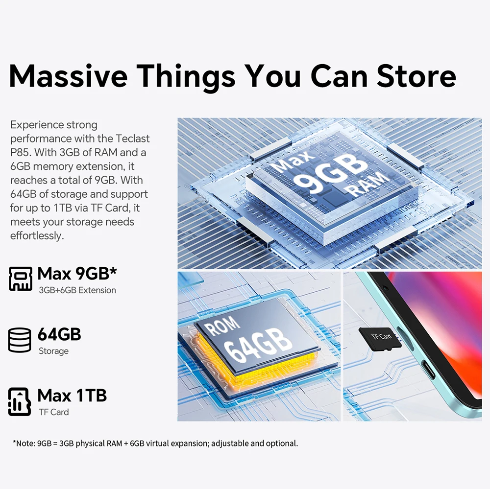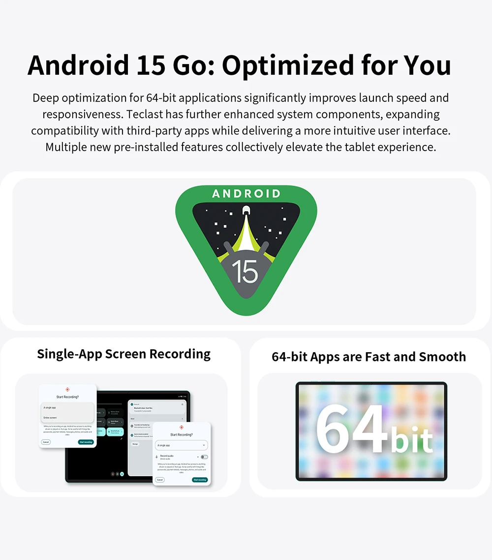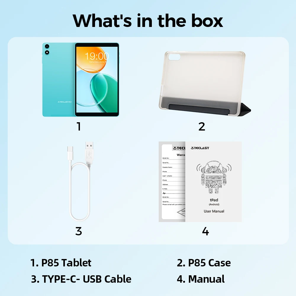 Teclast P85 2025 Android 15 Tablet 8“ IPS 9GB(3GB+6GB Expansion) RAM 64GB ROM A333 5-core Wi-Fi 6 Type-C Metal Body 5000mAh
