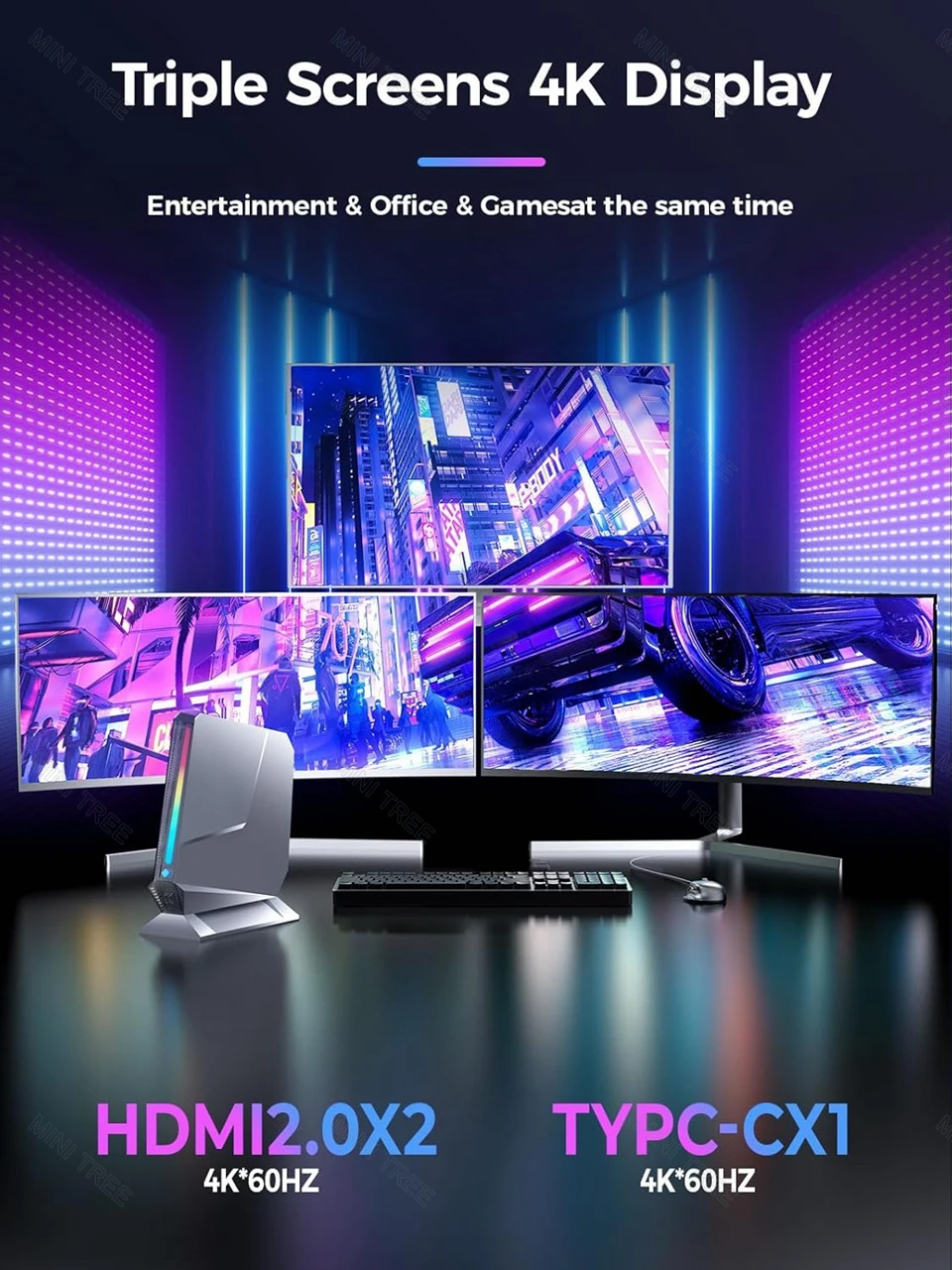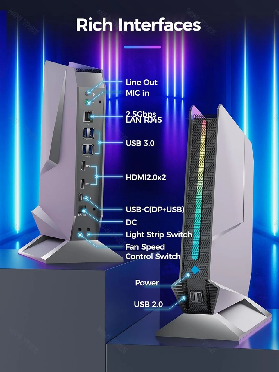 Rear I/O: 4 x USB 3.0, 2 x HDMI2.0(4K@60Hz), 1 x Type-C(4K@60Hz), 1 x 2.5G RJ45 LAN,