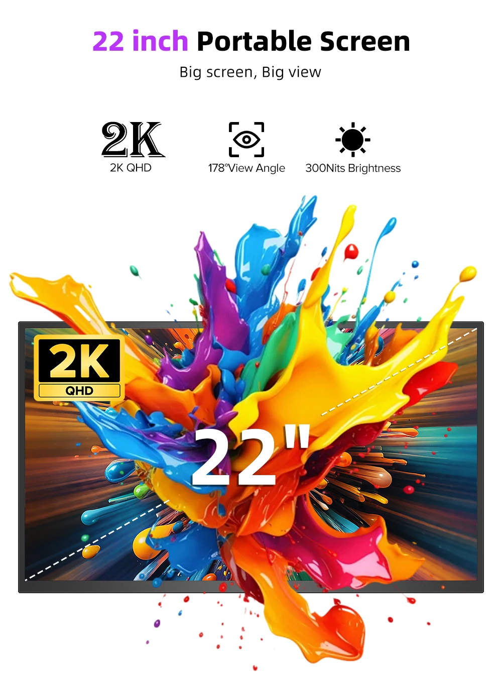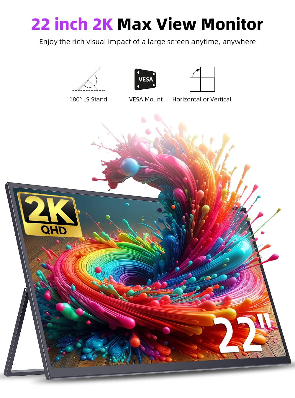 Designed with portability in mind, this sleek and lightweight 22 inch monitor is your perfect companion for mobile work and entertainment. Whether you're a digital nomad, a frequent traveler, or simply someone who values flexibility, this portable monitor allows you to create your ideal workspace wherever you are.