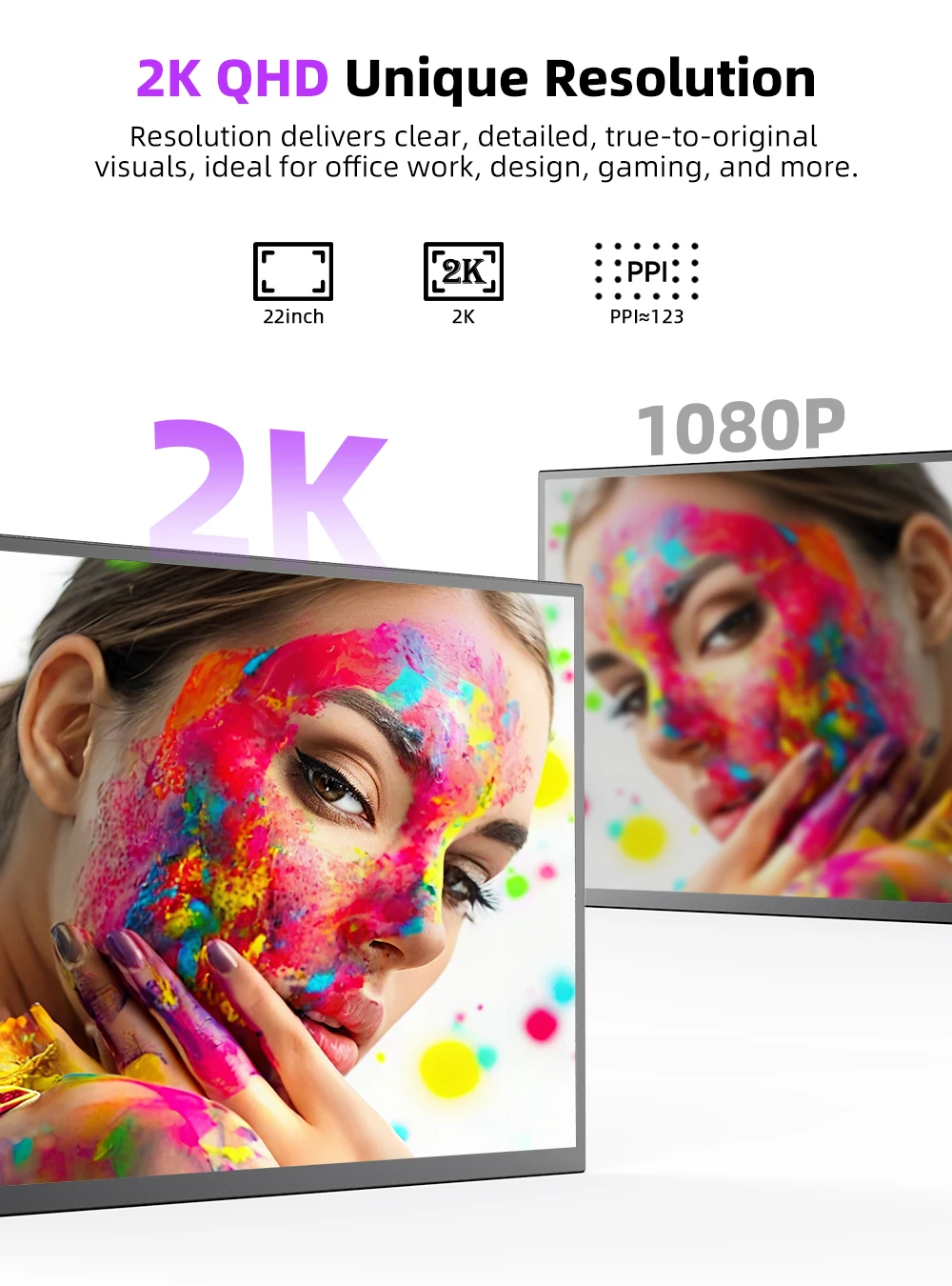 UPERFECT 22 Inch Desktop Monitor 1440P Computer Display With Stand Large Screen For Laptop PC Surface Window Phone Extend Screen