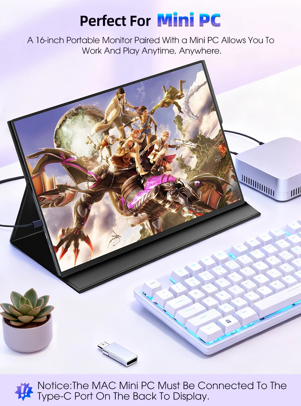 16inch monitor interface compatibility makes connecting easy! Whether it’s mini HDMI or USB-C, they can seamlessly connect with your monitor, unleashing your imagination for work and entertainment! Imagine the possibilities, making every moment you travel in the digital world full of surprises and convenience!