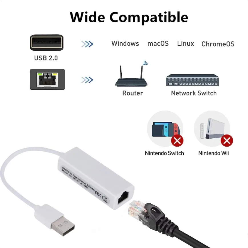 USB Network Card 10/100Mbps Wired Network Card RTL8152B USB 2.0 to RJ45 Ethernet Lan Adapter for PC Laptop Computer TV Box
